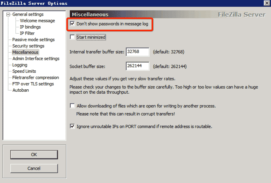 這樣黑客就無法通過FileZilla Server入侵服務器了。
