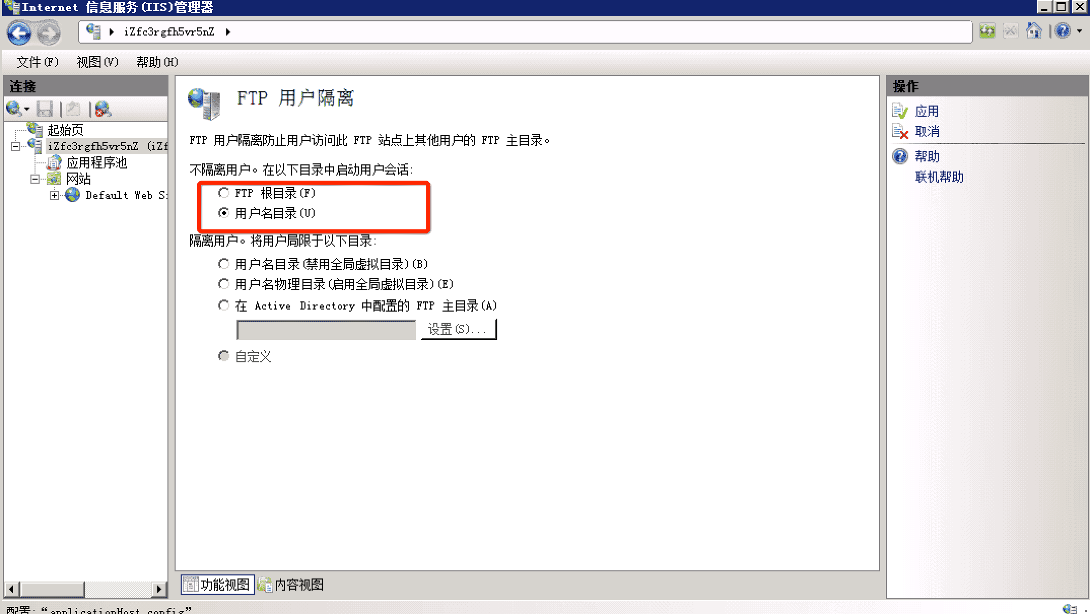打開 IIS 信息服務管理器,查看所有 FTP 服務相關的安全加固功能。