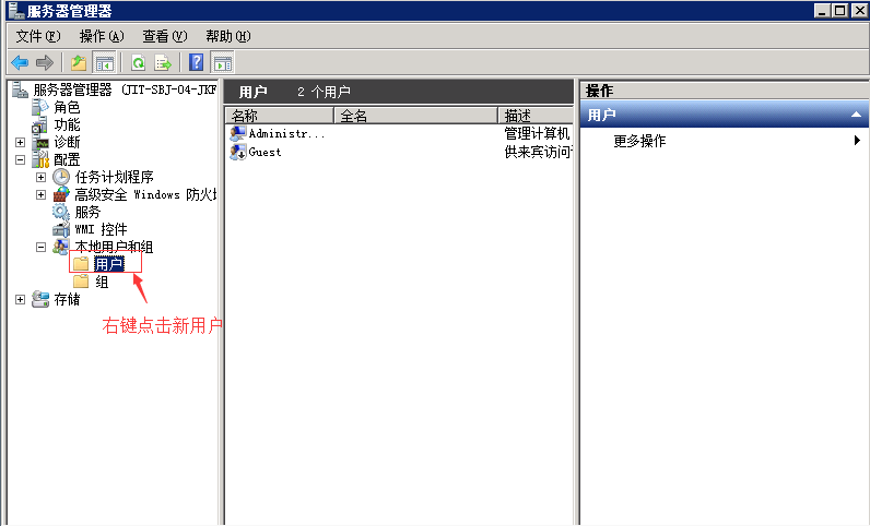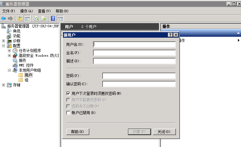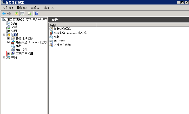 1、找到服務(wù)器管理器——配置——本地用戶和組,如圖: