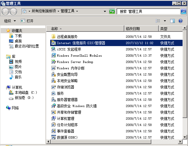 1、在服務(wù)器管理器——角色——web服務(wù)器(IIS)——Internet信息服務(wù)(IIS)管理器或在控制版面——管理工具——Internet 信息服務(wù)(IIS)管理器,如圖: