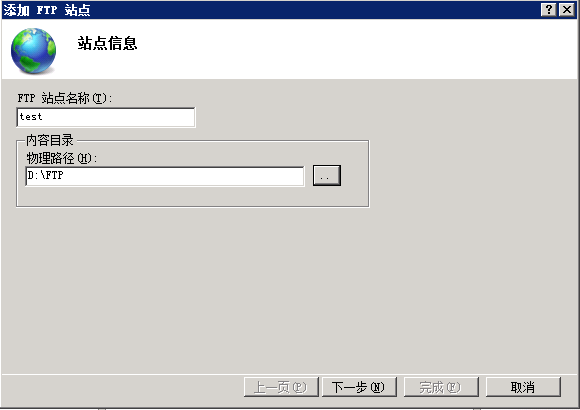 5、輸入相關(guān)FTP服務(wù)器信息,與物理路徑,如圖: