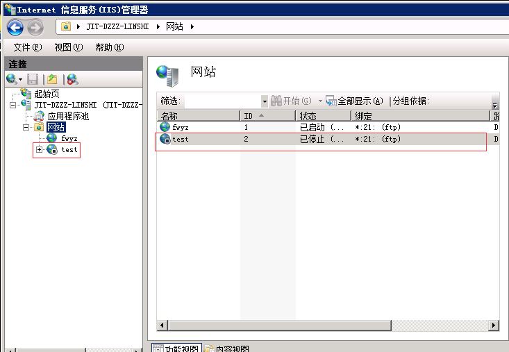 8、點擊完成,在網(wǎng)站下方看到剛剛建的FTP服務(wù)器,如圖: