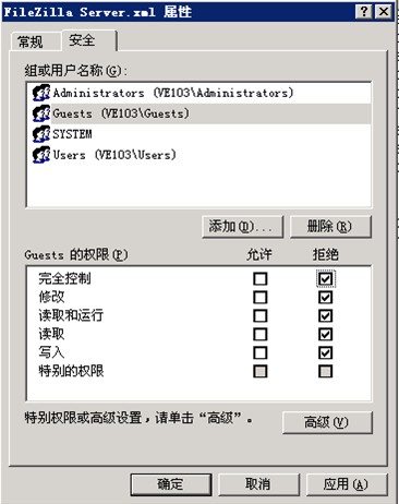 加入Guest組禁止讀寫的權限,設置為拒絕。