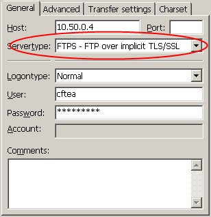用 FileZilla Client 連接 FTP 服務器。和普通的連接相同,只是注意選擇 Servertype,如下圖: