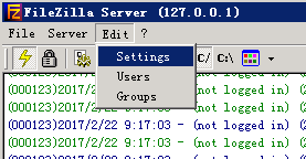 上面兩個坑解決以后,就可以按照網上各種教程添加用戶,分配文件夾訪問權限了,基本配置參考《FileZilla怎么用 FileZilla配置FTP服務圖文詳解》,Settings里每一項的具體作用參考《免費ftp服務器FileZilla Server配置》,大部分都默認設置就行了。