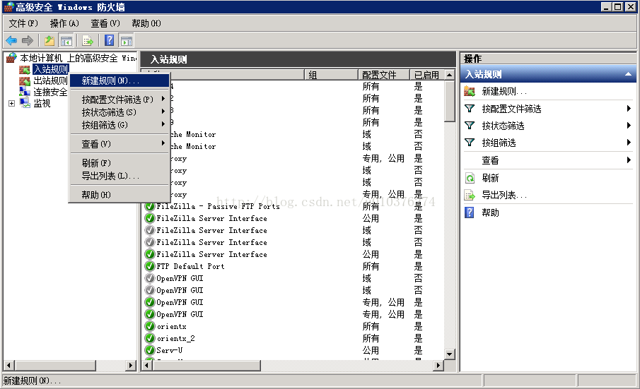 右擊“入站規則”,點擊“新建規則”