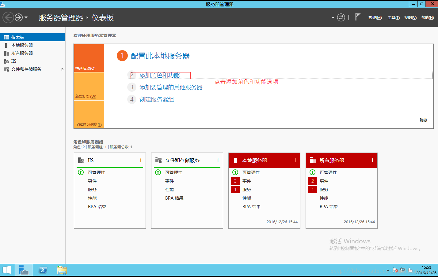 1.打開windows server2012R2 服務器管理器界面 添加角色和功能