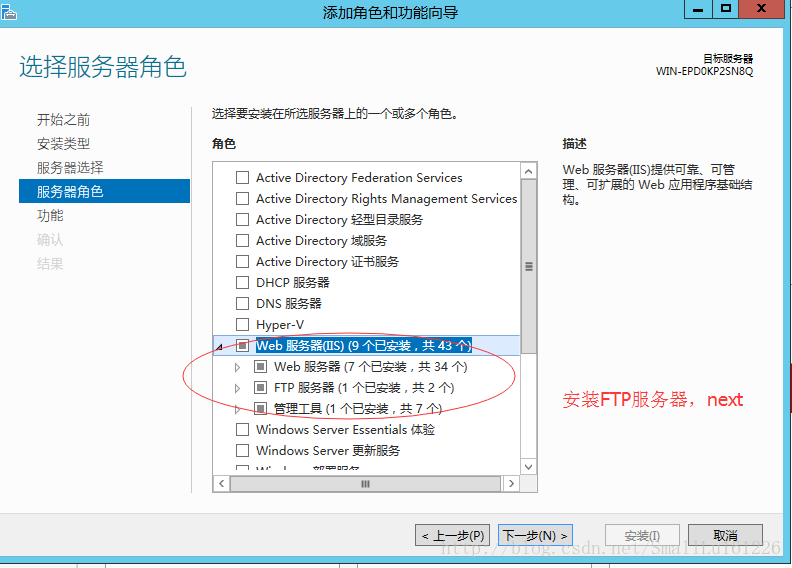3選擇Web 服務器(IIS)安裝 FTP服務器