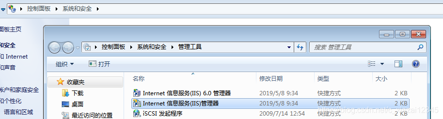 2.1 控制面板->系統(tǒng)和安全->管理工具->雙擊Internet信息服務(IIS)管理器