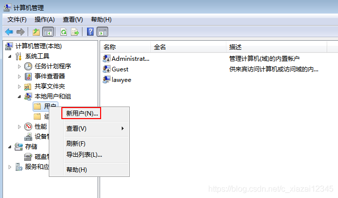 3. 選擇用戶,點擊右鍵,選擇新用戶