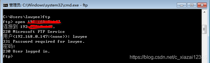3.輸入命令open ftp的ip地址,之后輸入用戶名和密碼
