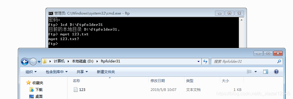 10.輸入mget 文件名,可以到本地路徑查看下載的文件(mget * ,下載所有文件)