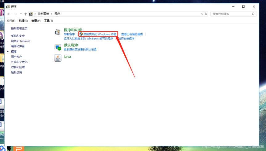 三:在程序打開的窗口中找到“啟用或關閉Windows功能” ,點擊打開;