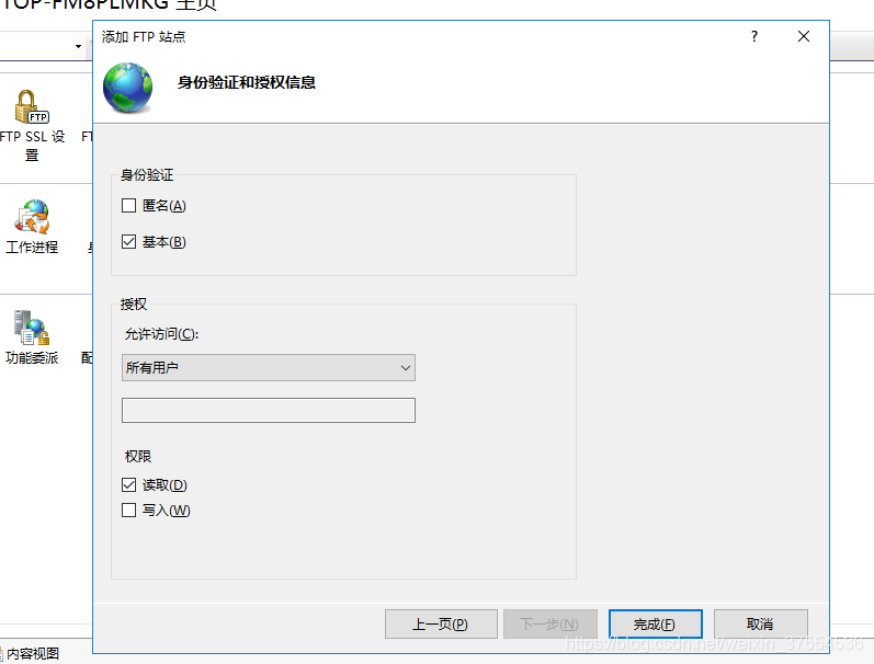 九:設置“身份驗證和授權信息”,設置完畢后點擊完成;