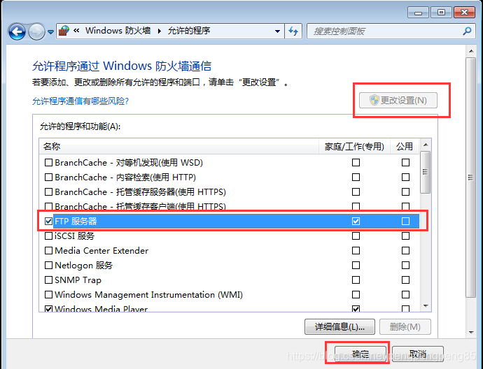 5.在彈出的窗口中勾選FTP服務(wù)器并確定。