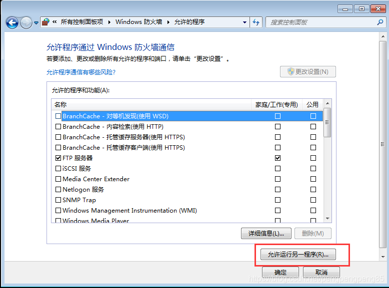 控制面板–>Windows防火墻–>允許程序或功能通過Windows防火墻–>新窗口中允許運(yùn)行另一程序”。在瀏覽中找到“C:\Windows\System32\svchost.exe”,打開并添加。