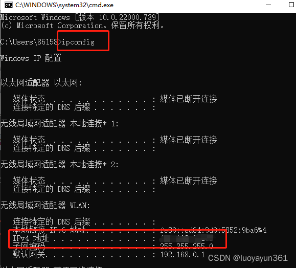 然后輸入ipconfig 查看IP