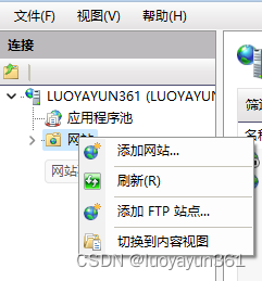 打開后在左側(cè) “網(wǎng)站” 右鍵菜單 打開 “添加FTP站點(diǎn)”