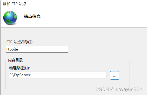 物理路徑記得填剛剛創(chuàng)建的Ftp根目錄文件夾路徑: