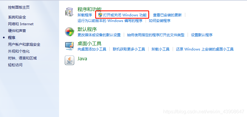 1.2 程序界面找到“啟用或關閉Windows功能”并打開