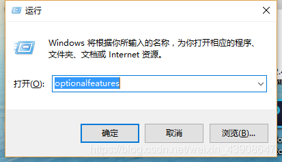 1.3 上面兩步也可以簡化為一步:按【Win + R】快捷鍵打開運行對話框,輸入“optionalfeatures”后,按回車鍵