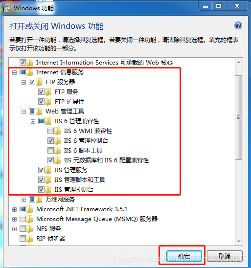 1.4 從“啟用或關閉Windows功能”彈窗中找到 Internet信息服務 (或者Internet Information Services)并打開配置IIS并點擊確定