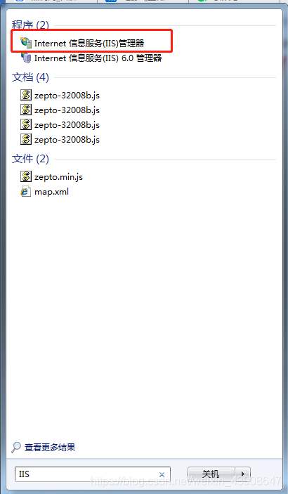 2.1 開始菜單搜索“IIS”并點擊進入IIS管理器