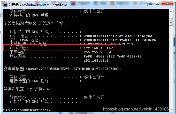 2.2.2 查看本機ip地址,后續訪問Ftp地址需要用到(打開cmd輸入ipconfig)