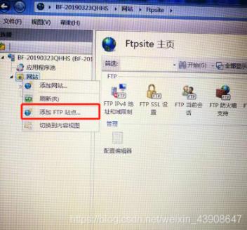 2.2.3 IIS網站管理器界面左邊導航欄找到“網站”,右鍵彈出菜單點擊“添加FTP站點”