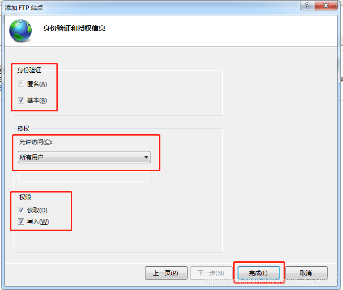 備注:細心的你可以能已經發現這里的賬戶就是我們計算機的賬戶,所以說我們應該可以使用自己登錄電腦的用戶名和密碼來登錄FTP站點,不用新建這個test用戶都可以。