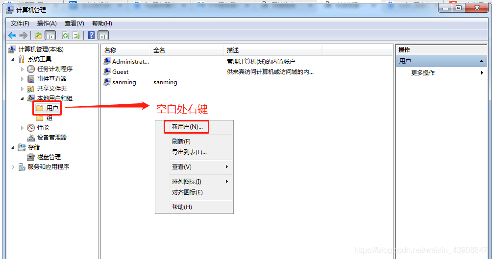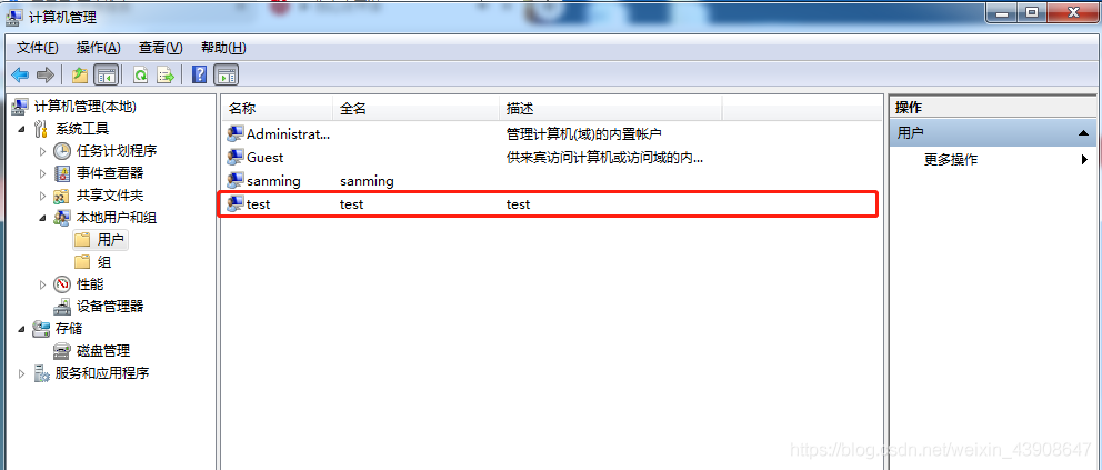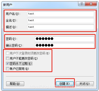 2.2.5 配置FTP站點用戶名和密碼,此電腦(桌面計算機圖標右鍵)—>管理->本地用戶和組->用戶->新建一個用戶,并設置密碼