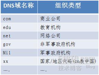 互聯網域名系統由名稱注冊機構負責維護分配由組織和國家/地區的頂級域在 Internet 上進行管理。 這些域名按照國際標準 3166。 一些很多現有縮寫,保留以供組織中,以及兩個字母和三個字母的國家/地區使用的縮寫使用下表所示。一些常見的DNS域名稱如下圖: