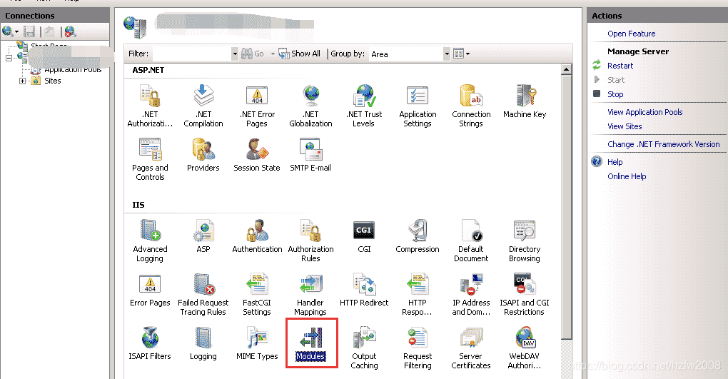 打開IIS管理器,雙擊模塊功能。