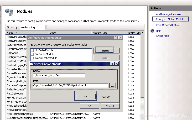 單擊配置本機模塊,然后在彈出的對話框中,單擊注冊。