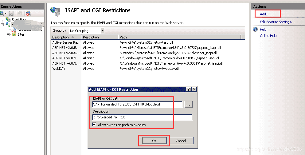 為添加的兩個文件授權允許運行ISAPI和CGI擴展。