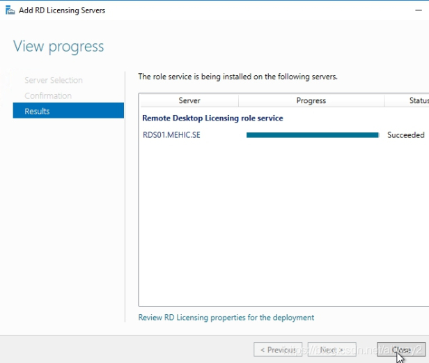 確認選擇,然后單擊添加。等待角色服務部署完畢,然后單擊“關閉”。
