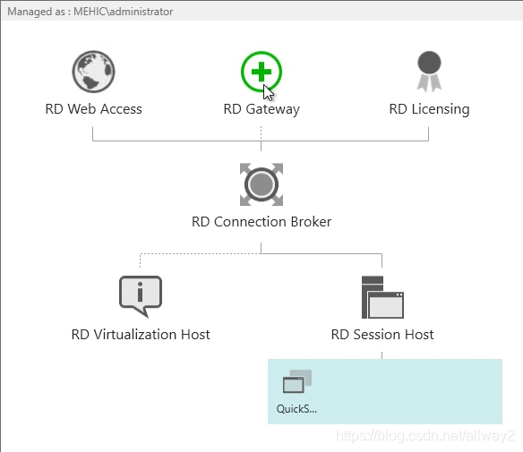 如您所見,該部署缺少RD網關服務器和RD授權服務器。