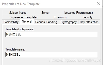 將會彈出新模板窗口。我要做的第一件事是在“常規”選項卡上將證書名稱更改為MEHIC SSL。