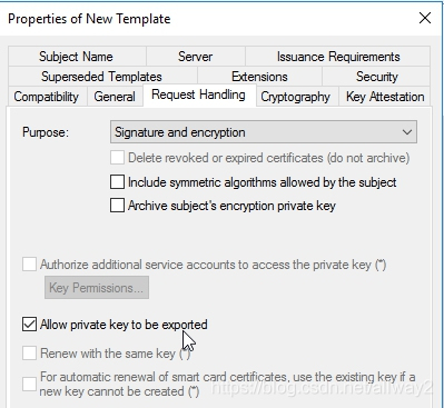 接下來,單擊“請求處理”選項卡,然后選中“ 允許導出私鑰”。