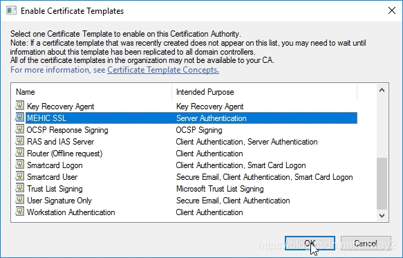 選擇我們新創建的證書,然后單擊“確定”。單擊“確定”后,您將可以在已發布到CA的證書列表中看到它。