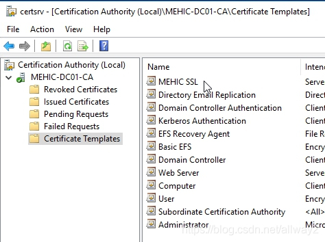 在現實生活中,您可以從公共CA(GoDaddy,VeriSign等)購買此證書。該證書需要包含您將用作RD Web訪問URL的FQDN(我的是rds01.mehic.se)。它必須為.pfx格式,并且您需要包含私鑰。就我而言,我將使用我的專用CA。(如果您不熟悉或沒有私有CA,請查看我的Mastering Windows Server 2016系列,以了解如何安裝證書頒發機構)