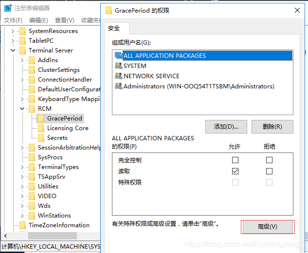 HKEY_LOCAL_MACHINE\SYSTEM\CurrentControlSet\Control\Terminal Server\RCM\GracePeriod