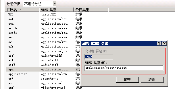 也可以這樣增加:文件擴(kuò)展名:.apk MIME類型:application/vnd.android.package-archive