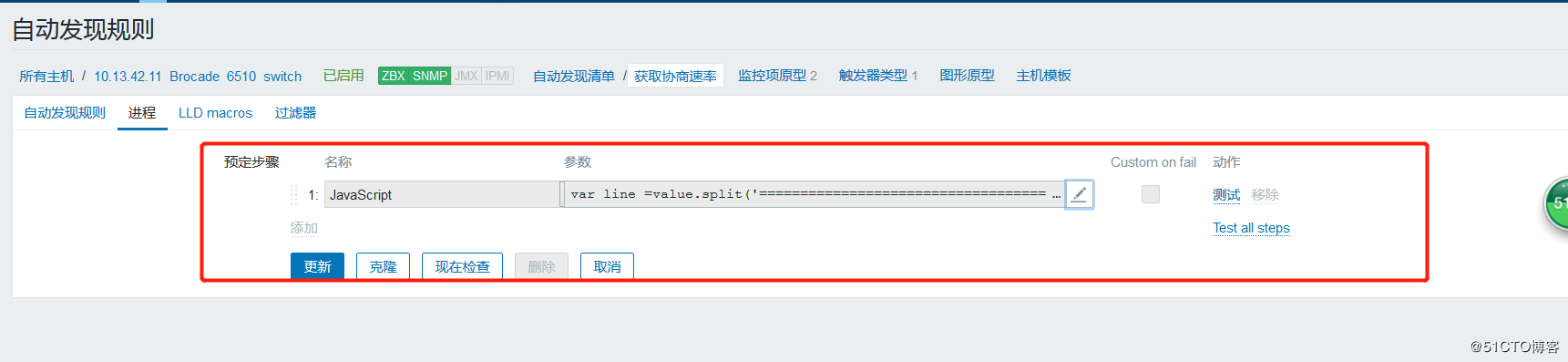 把自動發現的結果用javascript處理后,變成了正確的json格式后,再創建監控項原型。