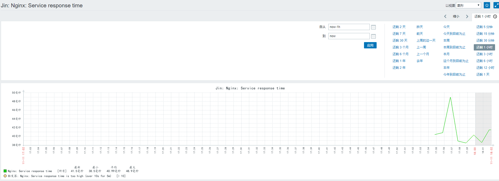 當(dāng)監(jiān)控項(xiàng)運(yùn)行了一段時(shí)間后,可以查看可視化圖表,如果沒有可以自己創(chuàng)建一個(gè),下面會(huì)有詳細(xì)介紹