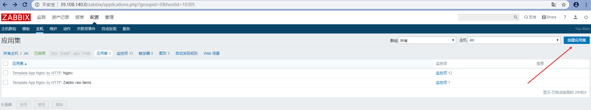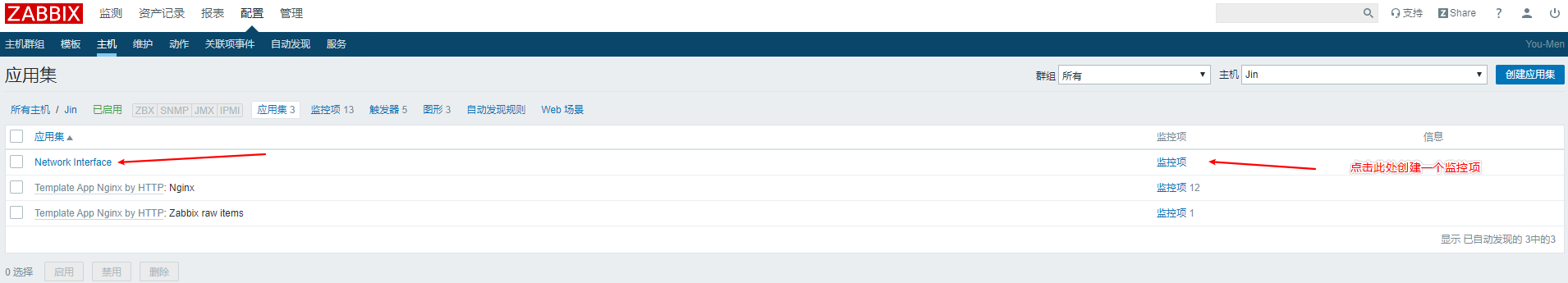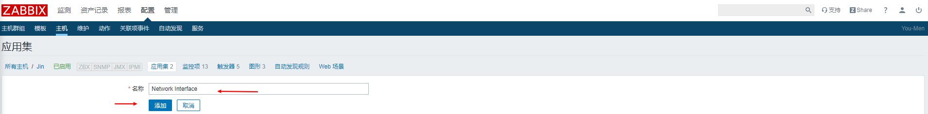 我們先創(chuàng)建一個(gè)應(yīng)用集,這樣的話之后創(chuàng)建的網(wǎng)卡上傳,下載,總流量不會(huì)顯的很亂,都在一個(gè)Network應(yīng)用集里面,而且能導(dǎo)出成xml文件,放到其他的zabbxi主機(jī)上能直接用.