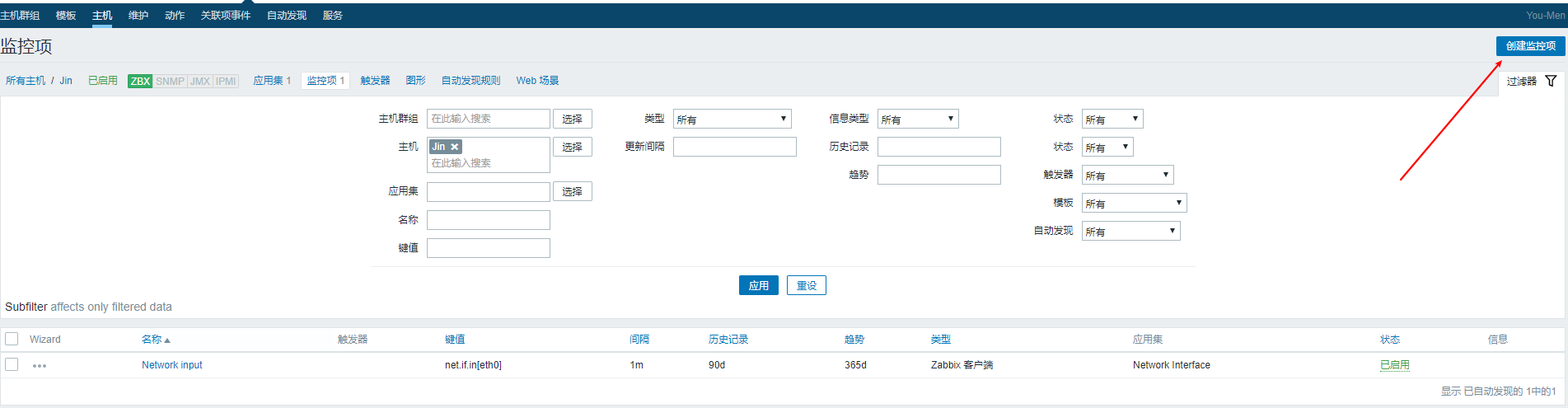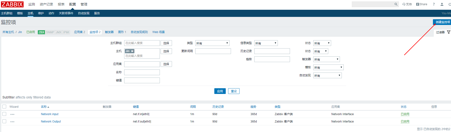 點(diǎn)擊添加,新的監(jiān)控項(xiàng)就出現(xiàn)在監(jiān)控項(xiàng)列表中了