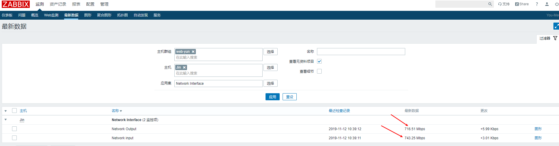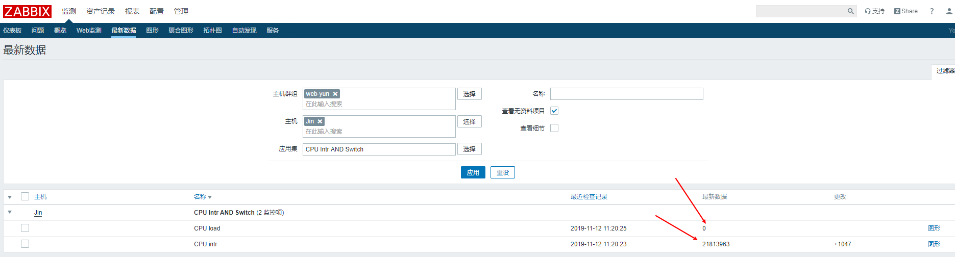 接下來(lái)我們檢測(cè)---> 主機(jī)群組里面去查看下最新數(shù)據(jù),我們可以從下圖看到是有數(shù)據(jù)的