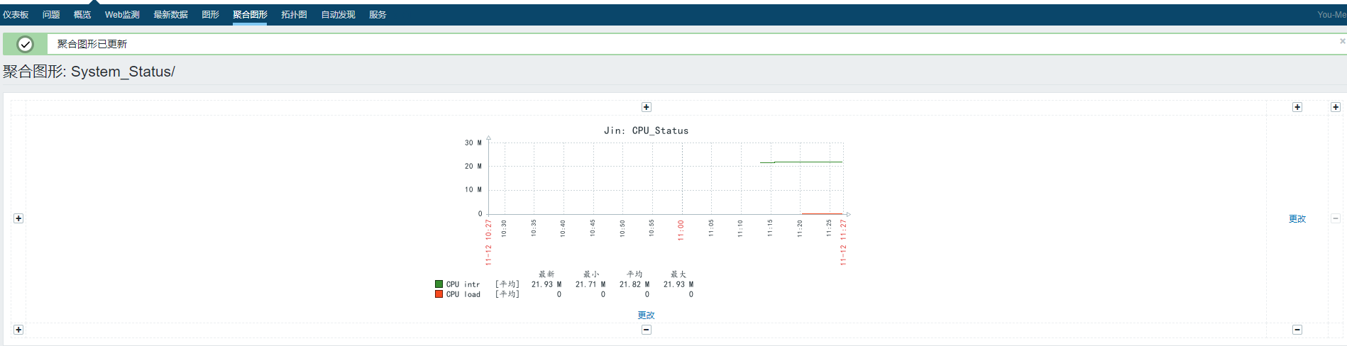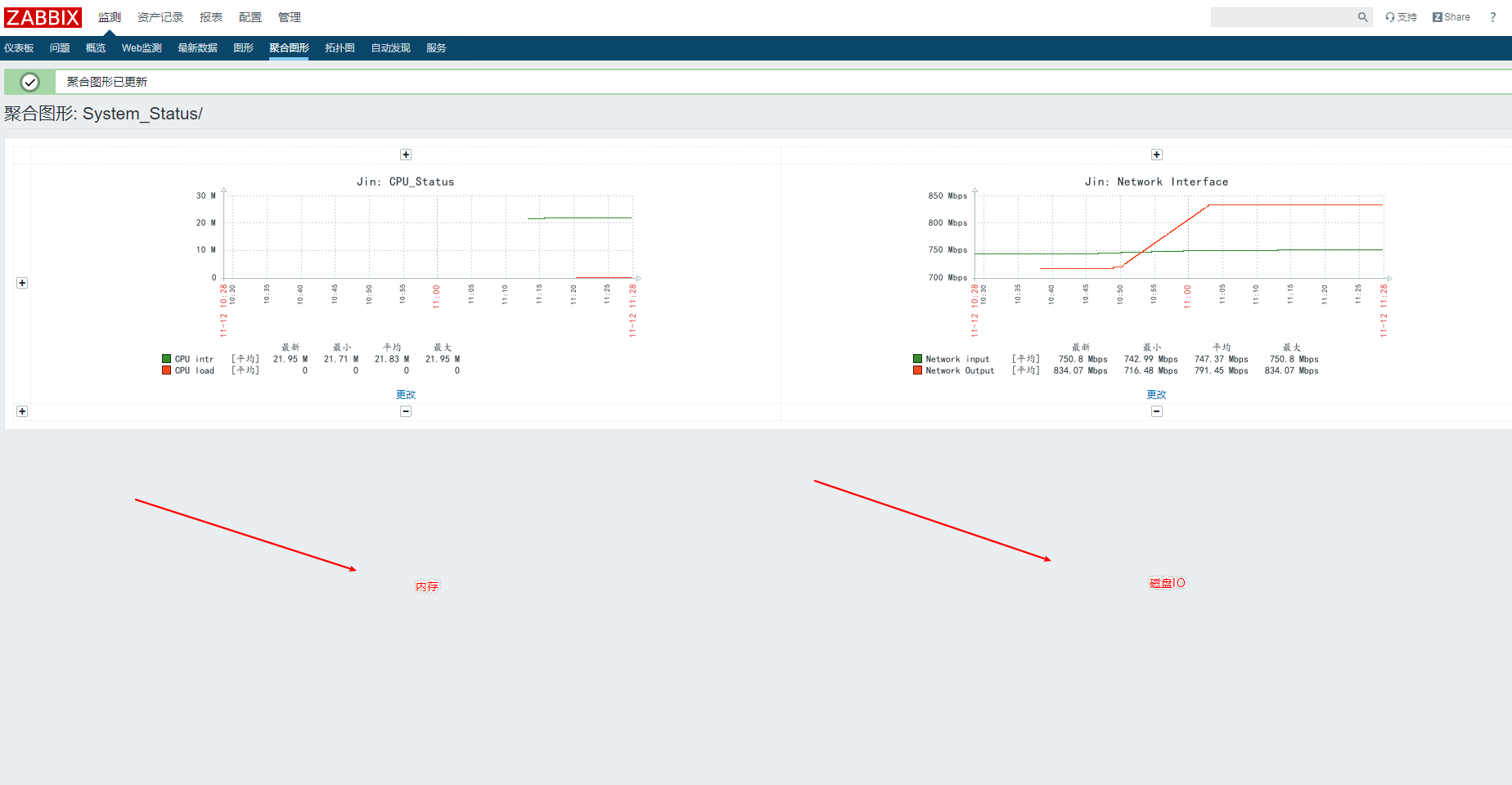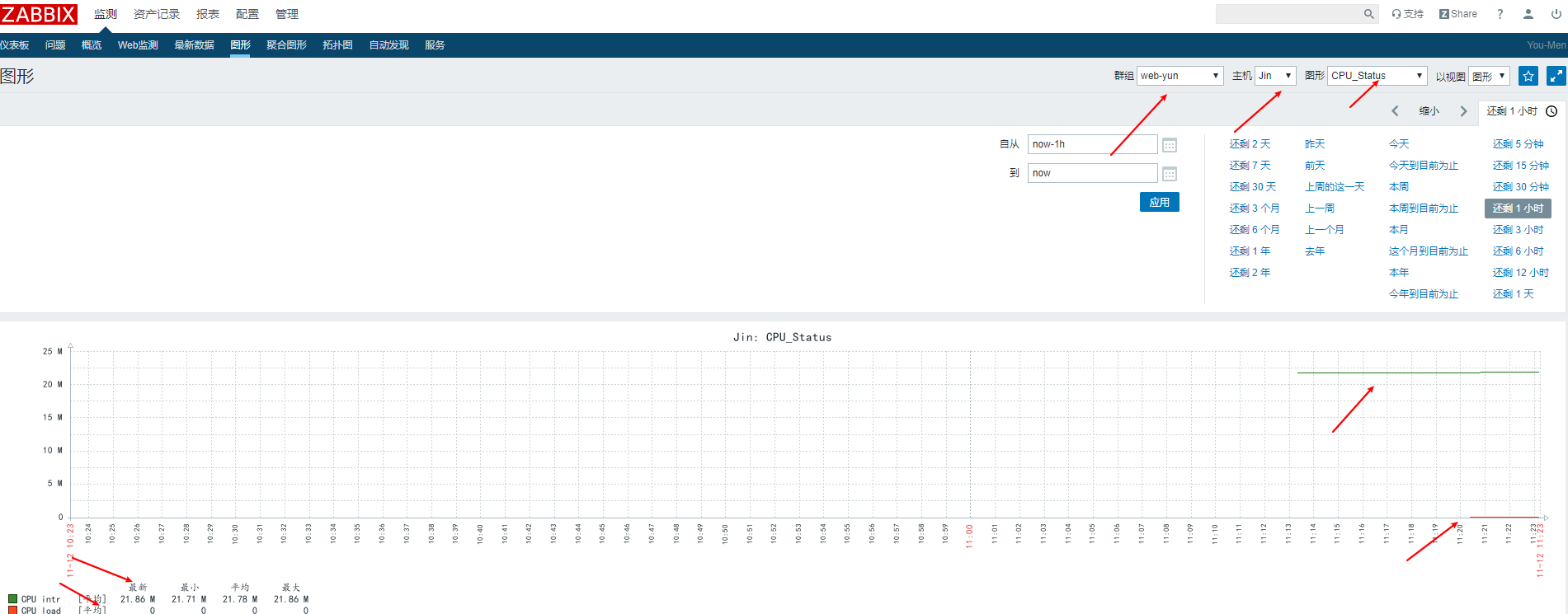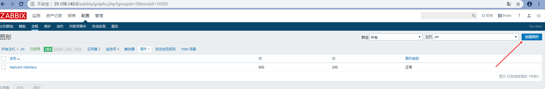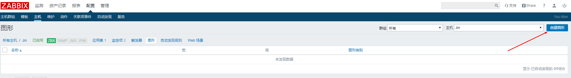 接下來(lái)我們?nèi)ゲ榭幢O(jiān)測(cè) ---> 圖形,選擇相應(yīng)群組,相應(yīng)的主機(jī)及創(chuàng)建的圖形
