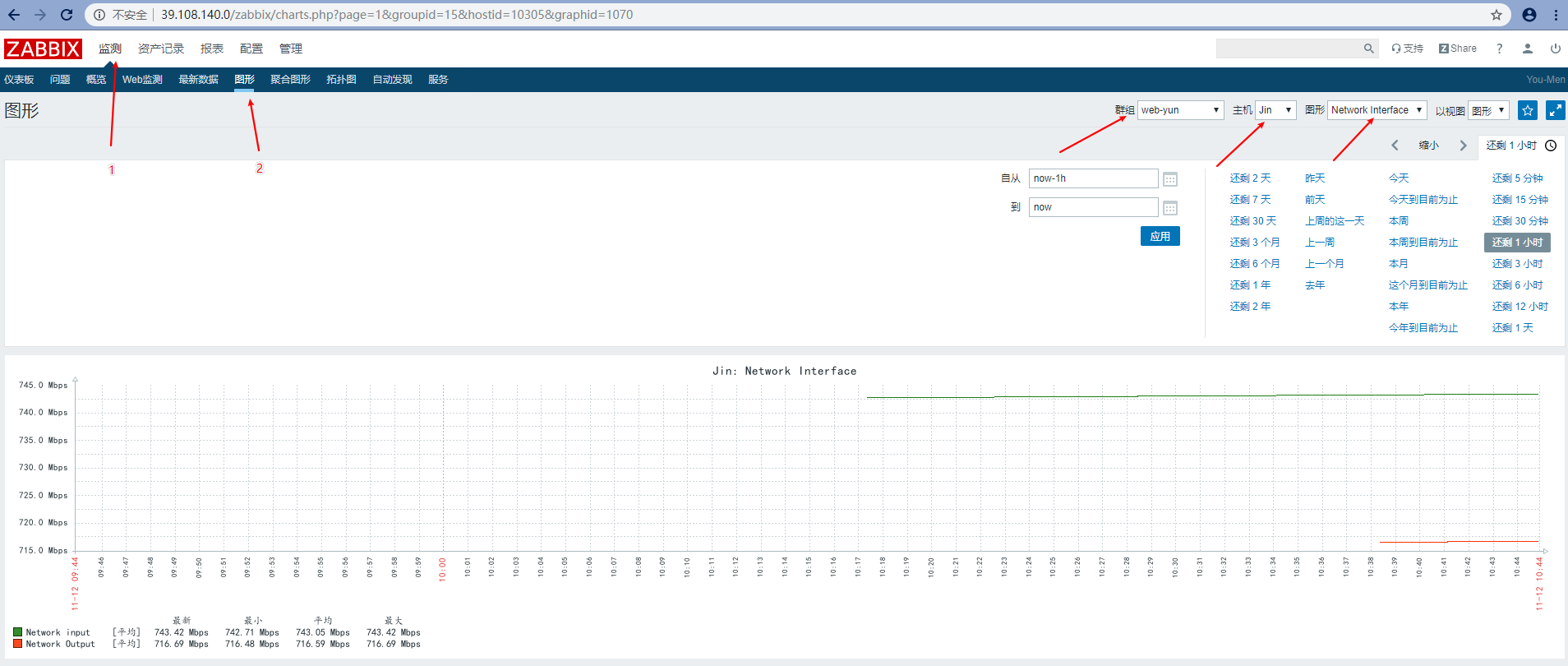 至此,監(jiān)控本地主機(jī)就完成了,如果想看下監(jiān)控本地主機(jī)的網(wǎng)卡流量就做下面圖2步驟.鼠標(biāo)依次根據(jù)數(shù)字挨個(gè)點(diǎn),如果想要監(jiān)控項(xiàng)是中文的話,可以做Zabbix故障例一,但是4.4版本較以前版本有所改善,監(jiān)控項(xiàng)不是亂碼,而是英文.